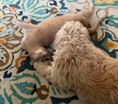 This friendly little golden doodle wags her tail and happily greets everyone she meets during her walks.