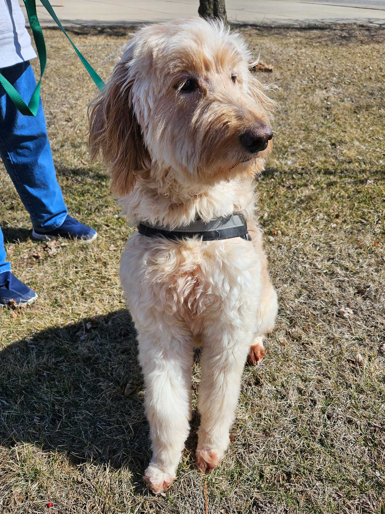 OK, mellow and golden doodle may not be synonymous, but mellow describes me – Morgan – to a T! I am social and love being with people and getting attention, but I’m not needy about it. I enjoy following my foster mom around the house and hanging out near her. And I like to check in on foster dad, who often is confined to his bed, to make sure he’s OK and give him some golden love.